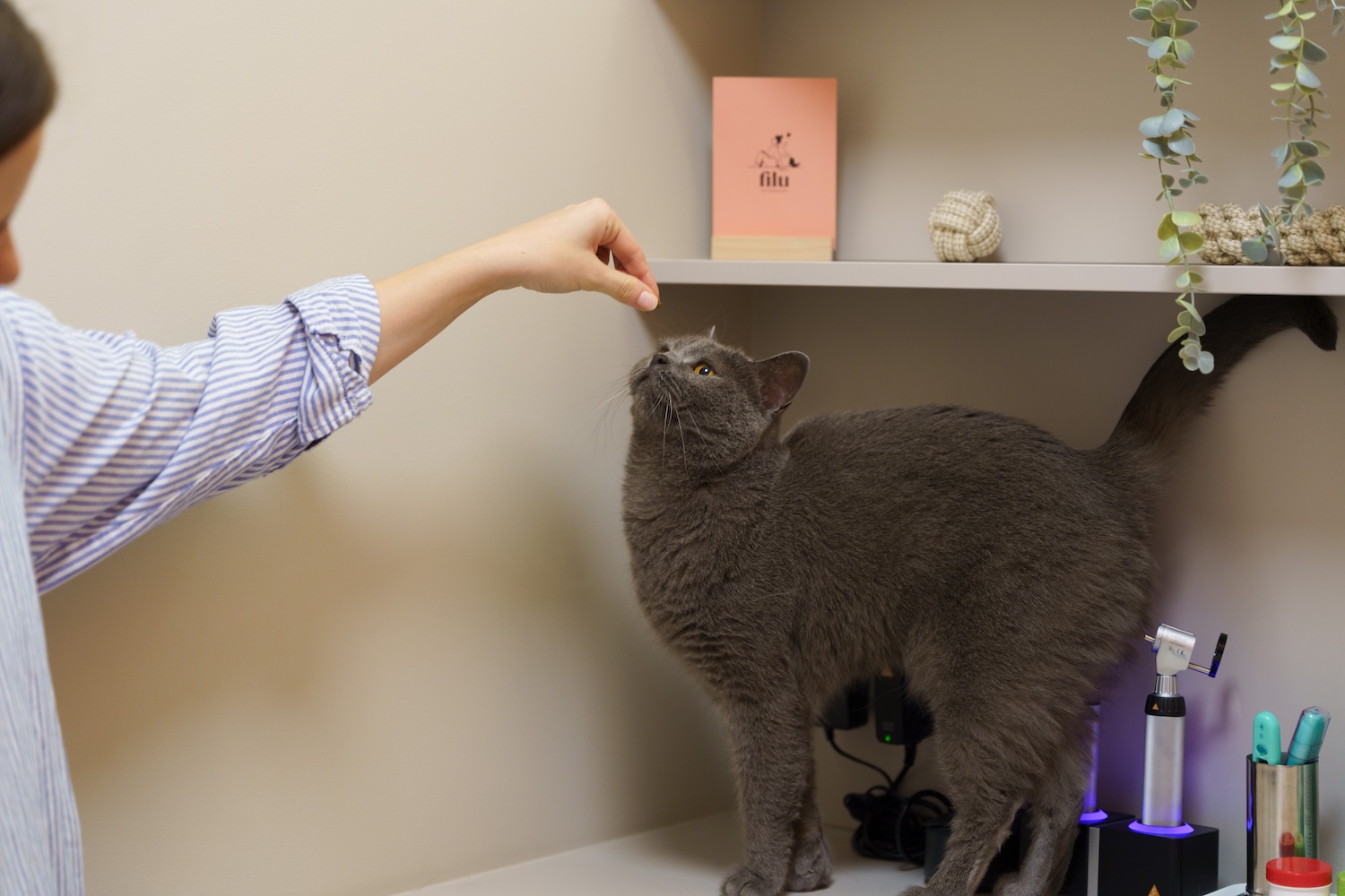 Einer unserer vier Behandlungsräume ist ausschließlich für Katzen reserviert, frei von ungewohnten Düften und ausgestattet mit Geräten von Lucy Balu, die Ihre Katze beruhigen.